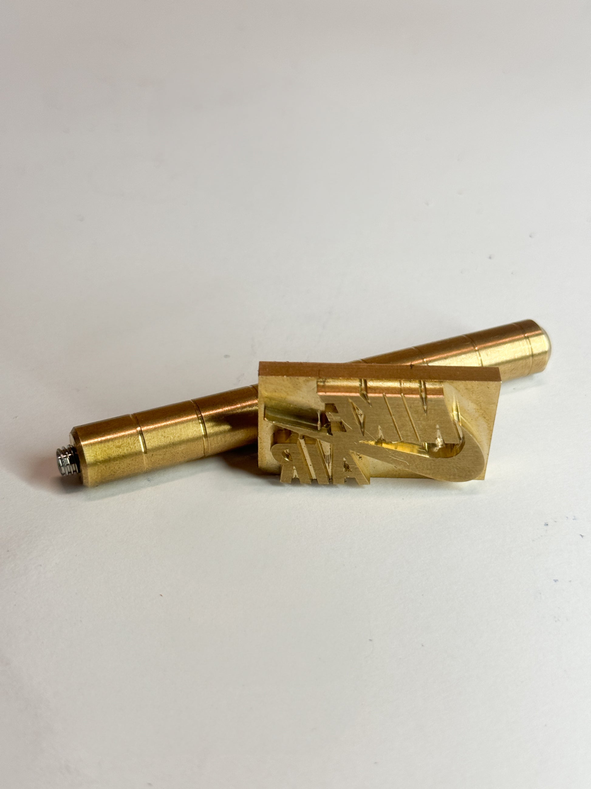 Mini swoosh brass stamps. A brass stamp for embossing on leather, suede, and other materials. Check out our Instagram to see how it can be used and what techniques can be applied. If this is your first stamp, we recommend purchasing a steel handle.