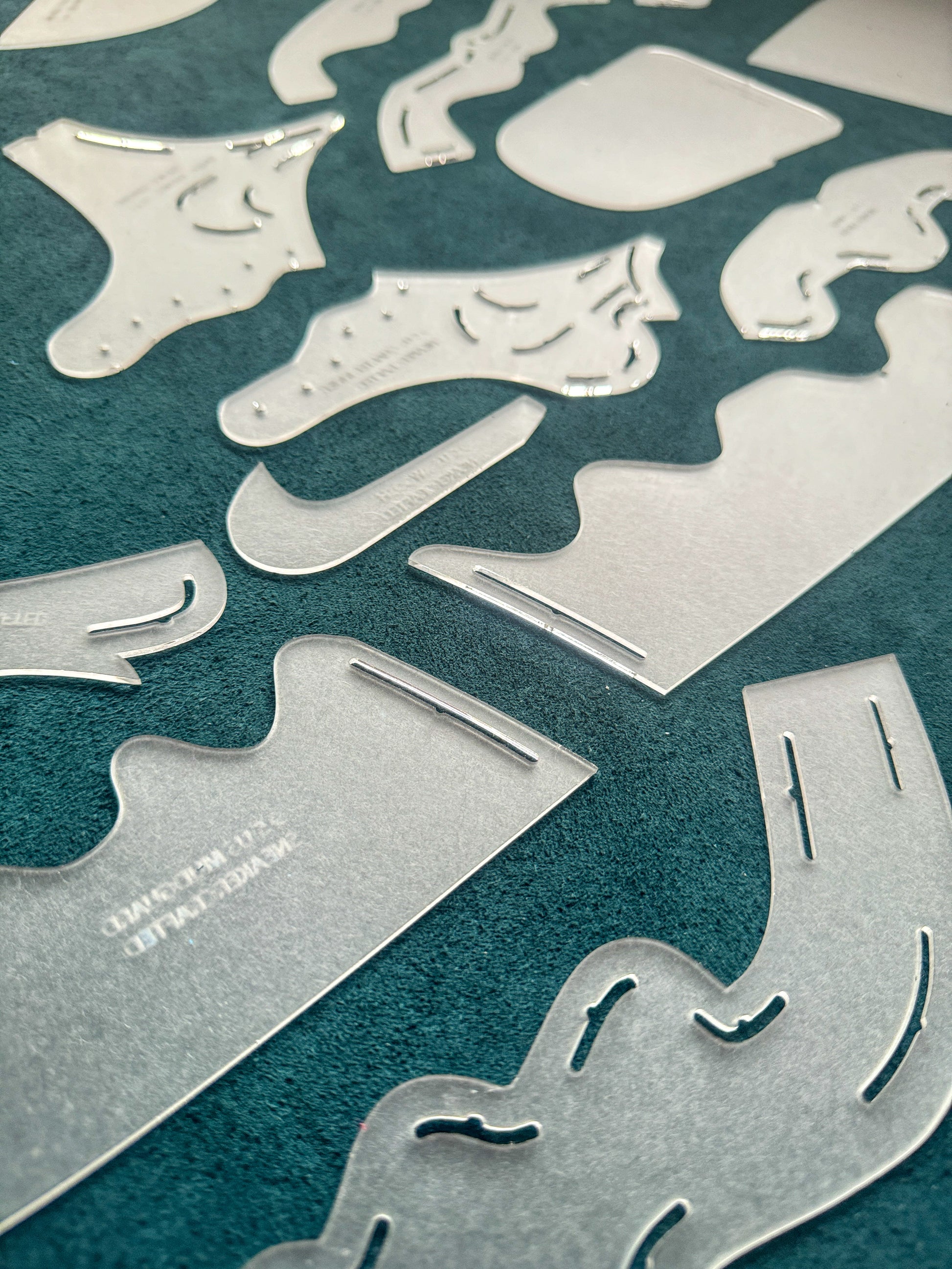 Our acrylic plastic pattern offers unparalleled accuracy and durability compared to traditional paper patterns. Crafted from 2mm acrylic sheets, this pattern is completely waterproof and boasts exceptional durability that ensures it will last for years to come. It's designed for repeated use, allowing you to create as many pairs as you need.