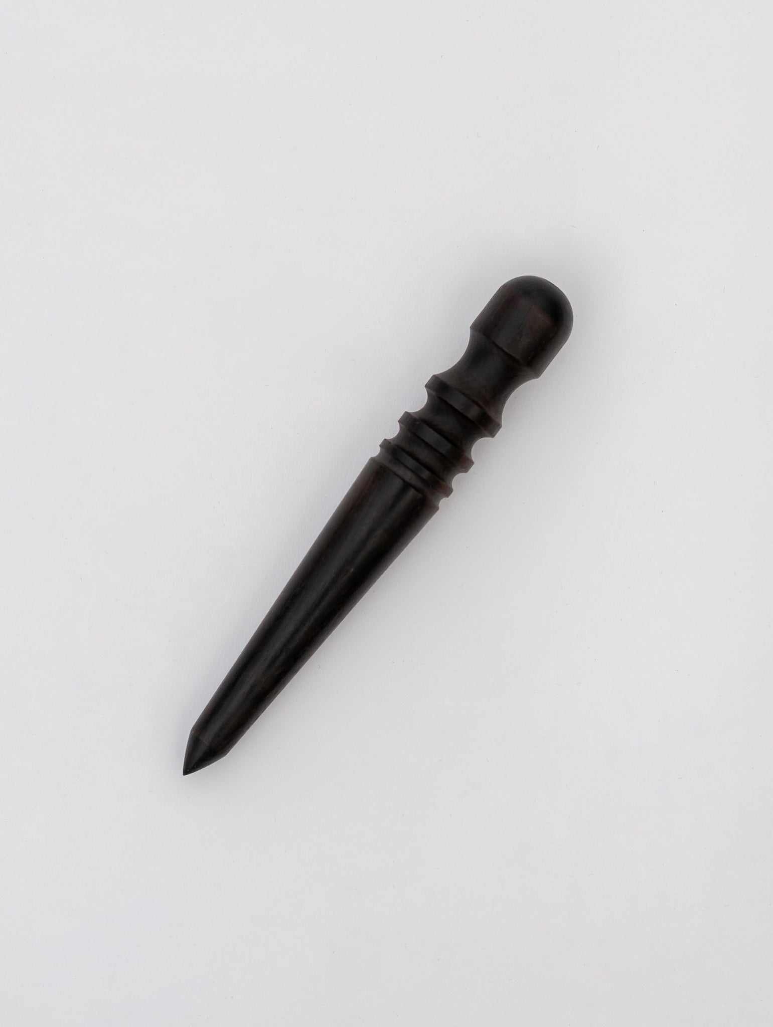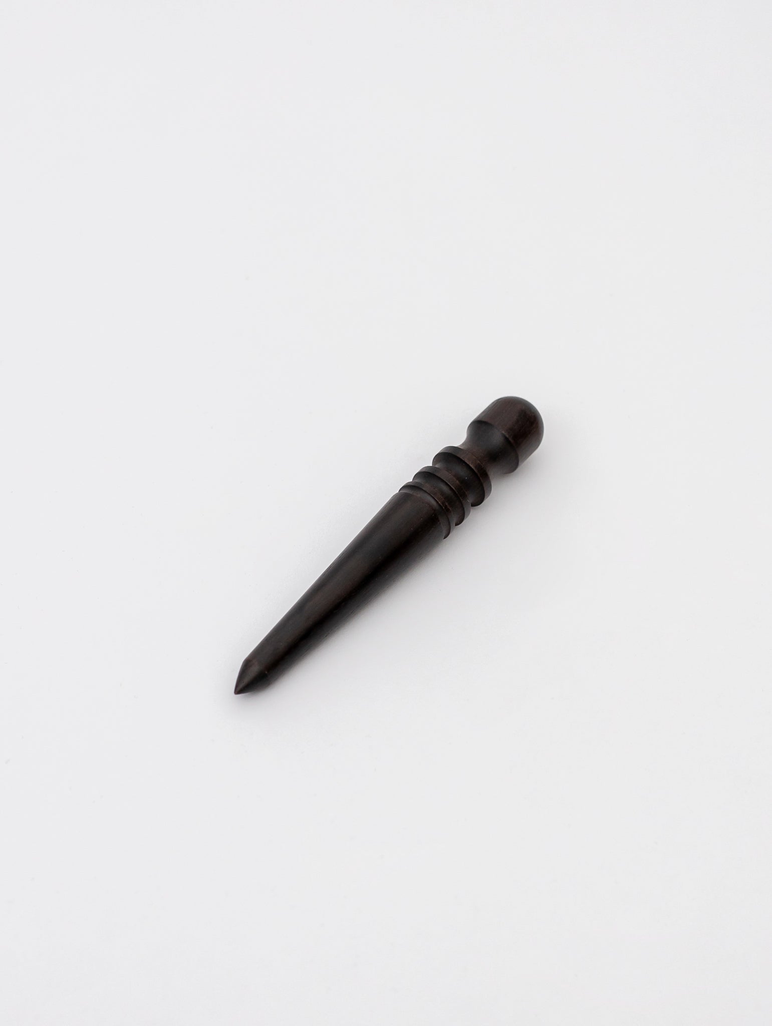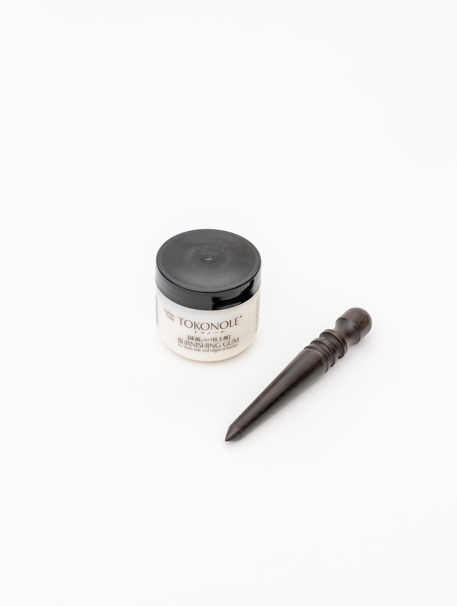 The Edge Burnisher, made of mahogany wood, is an indispensable tool for smoothing leather edges. Thanks to its grooves of varying widths, it can be perfectly adjusted to the thickness of the leather being polished. It is also recommended to use Japanese Tokonole leather burnishing compound, which provides a deeper shine and smoother finish.