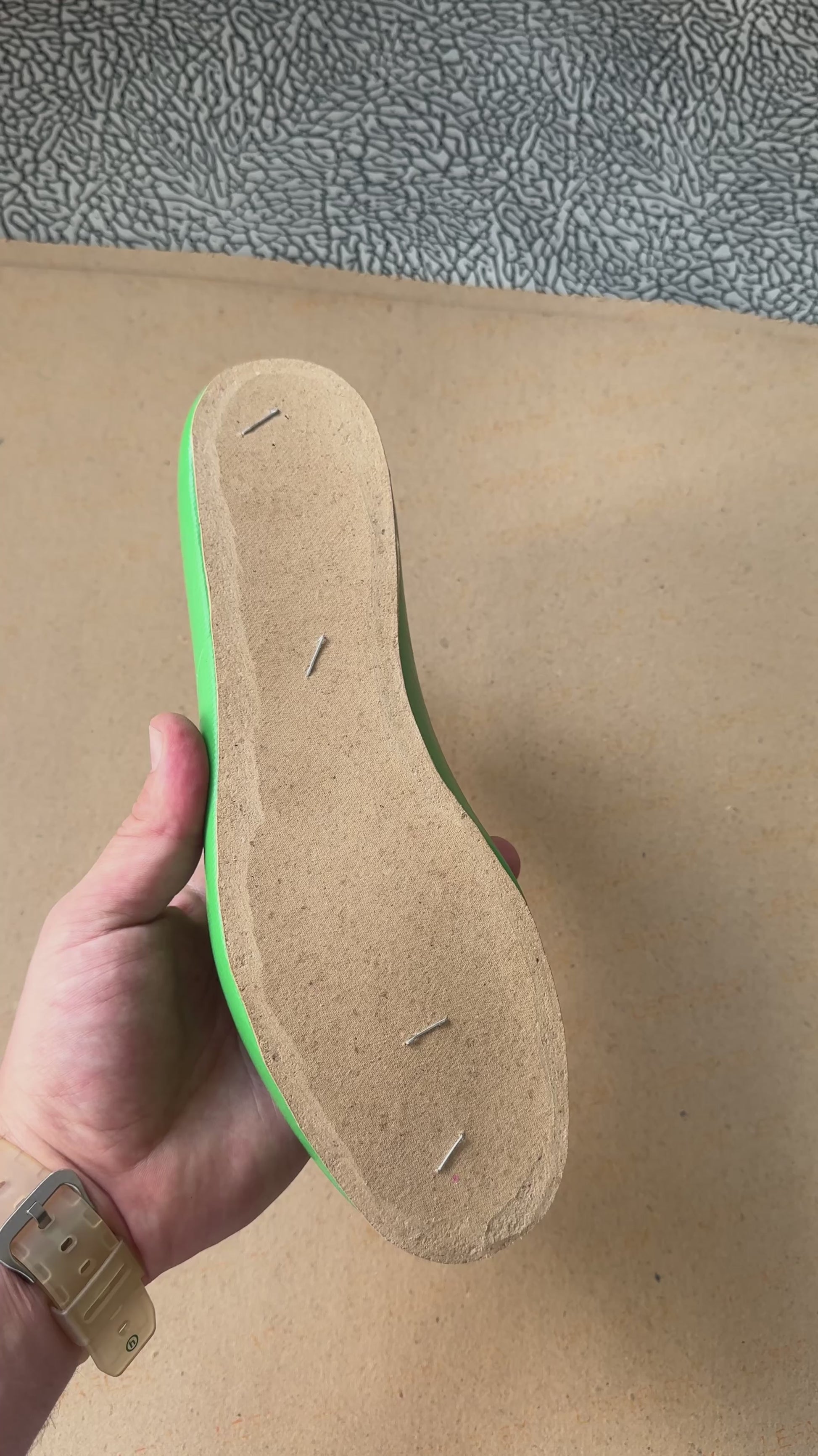 This is a secondary leather material, which serves as the base for handcrafting shoes. The lasting board is attached to the last, then the upper is stretched and glued to the bottom. The material is easy to work with and durable.
