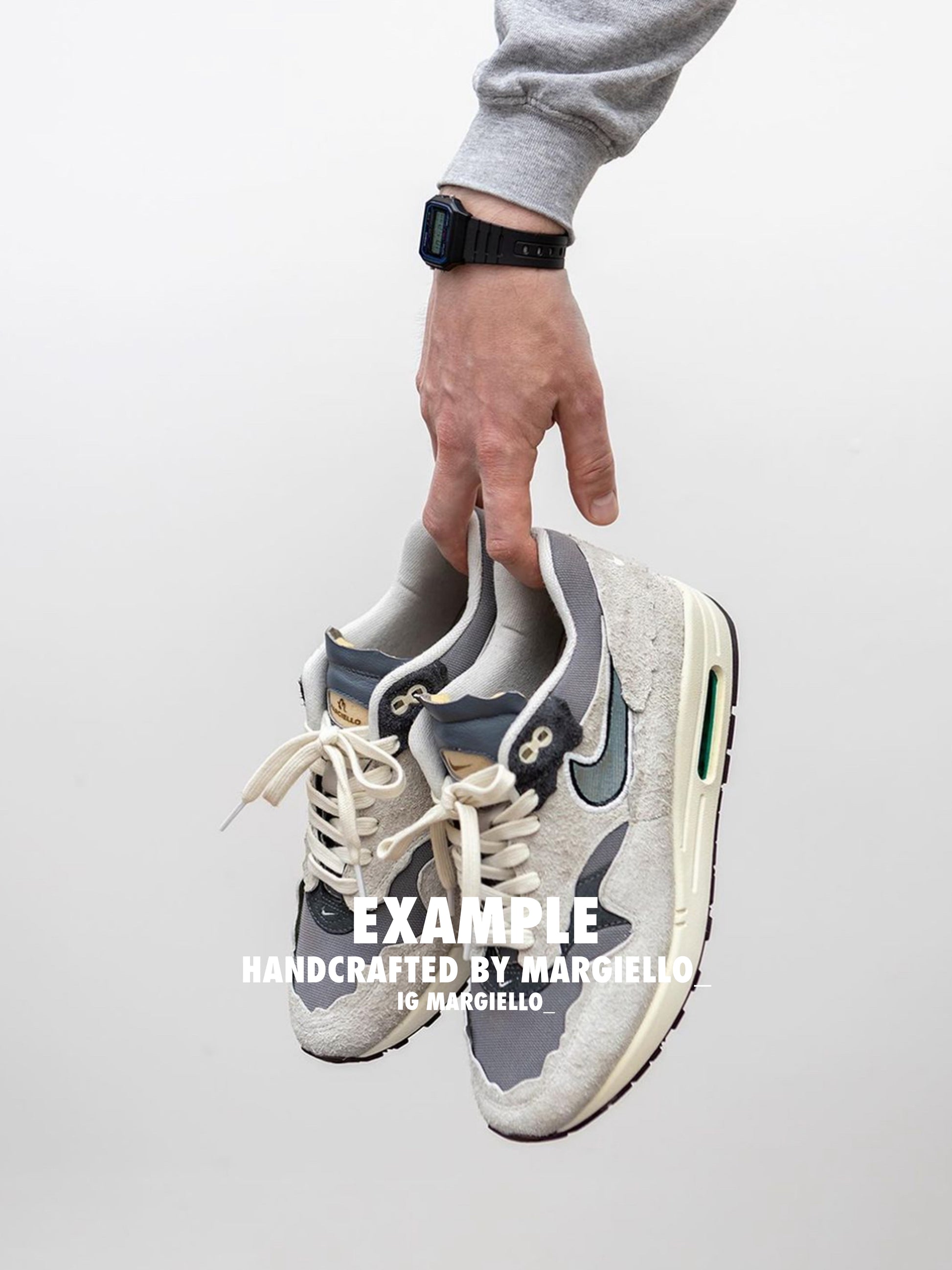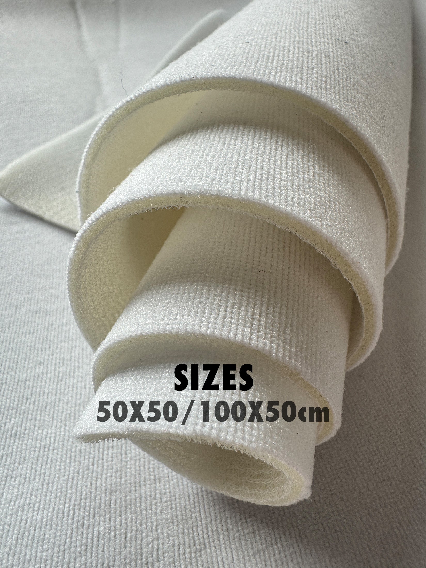 High-quality white material ideal for lining sneakers. The material is suitable for hand dyeing, for example, using diluted Angelus paints. One piece measures 50x50 or 100/50cm. Lining si laminated 3mm foam. For more examples, please visit Instagram: margiello.