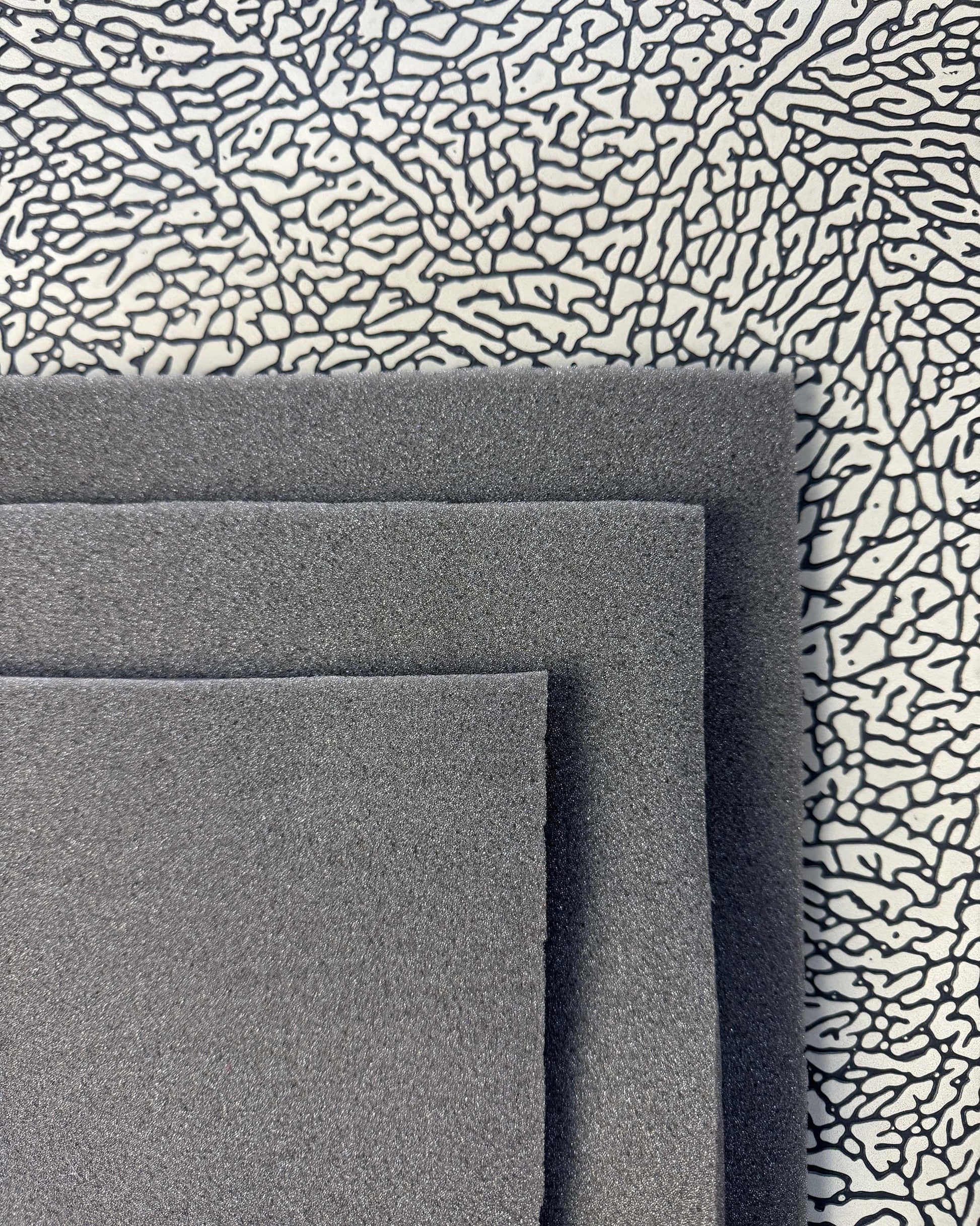 The foam has a thickness of 4 mm and is sold in sheets measuring 50 by 50 cm.