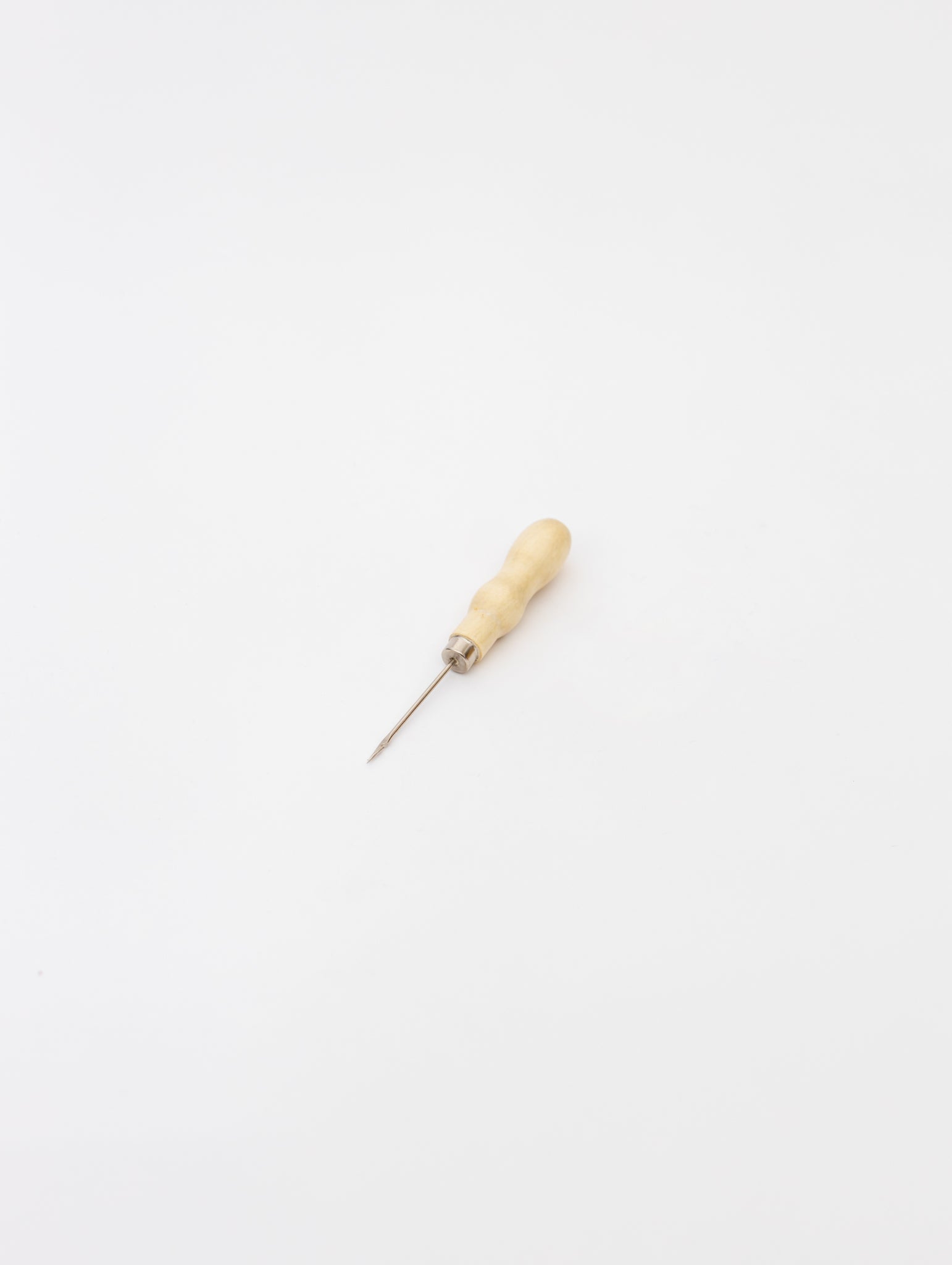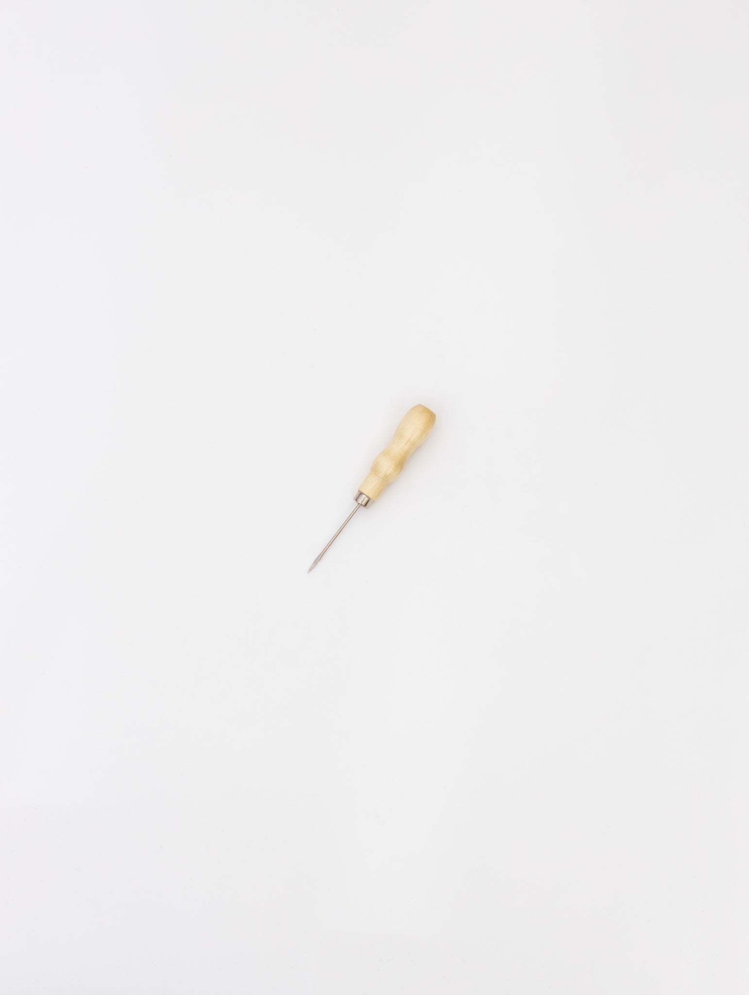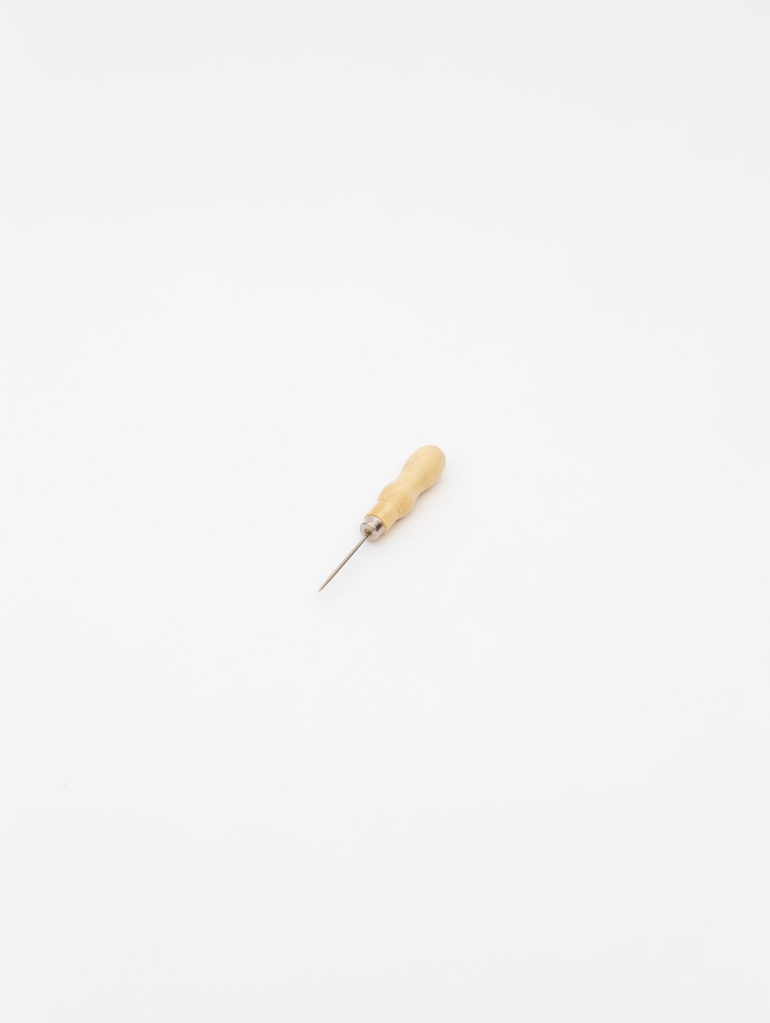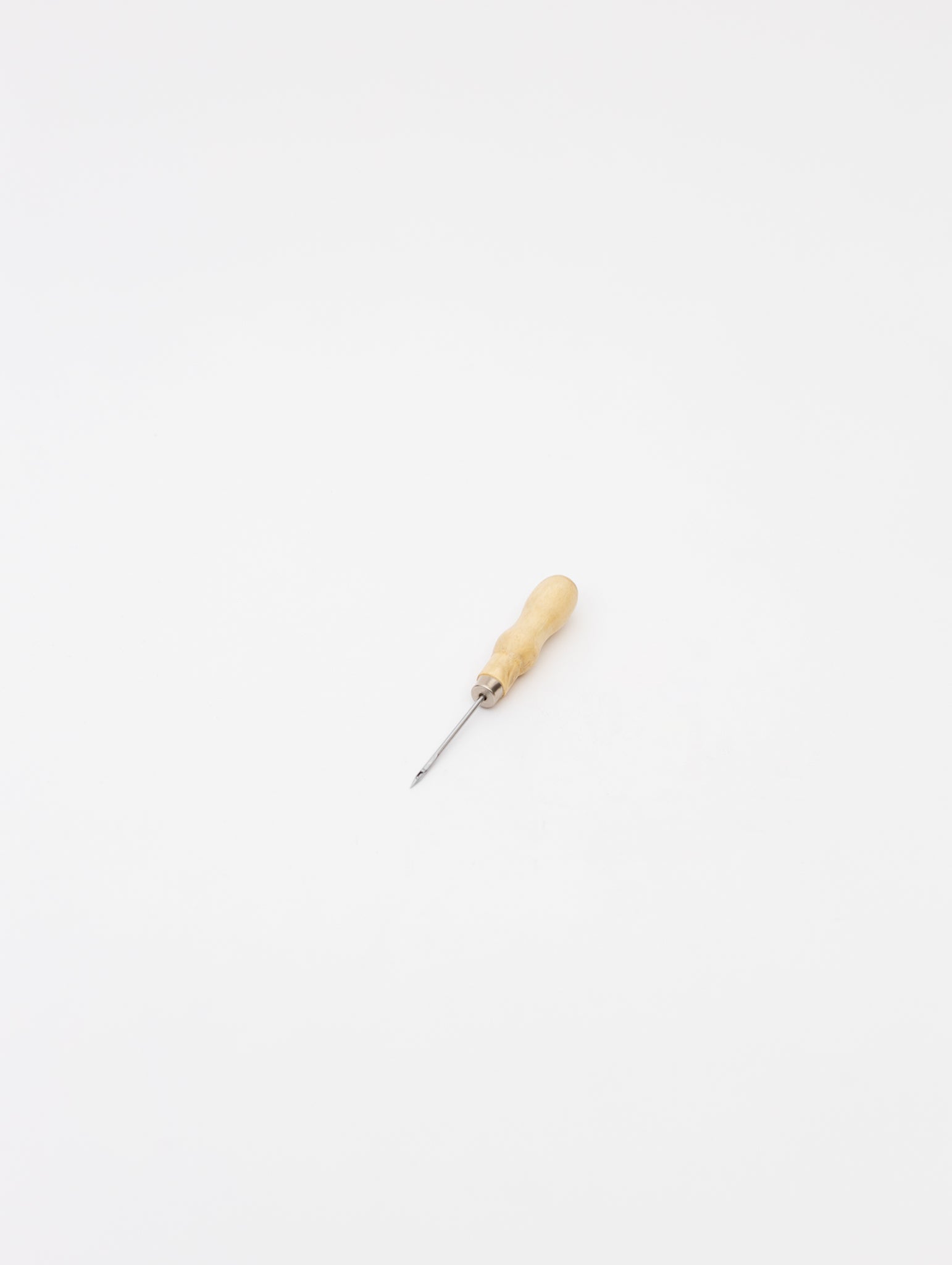 A specialized hand tool designed for piercing and stitching sneaker soles and midsoles. The durable steel tip allows you to easily create clean, precise holes in rubber, EVA, or leather midsoles, making it ideal for hand-stitching soles with waxed thread